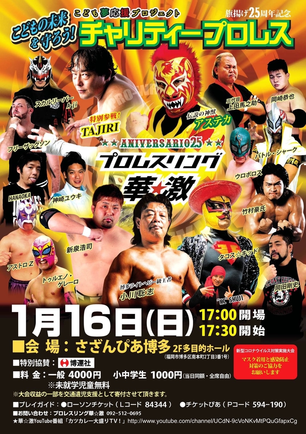 ☆チケット料金◆最前列ファイヤーシ-ト/10,000円・特別リングサイド(2・3列目)/8,000円・リングサイド(4列目)/6,000円・自由席(5列目)/5,000円・小中学生/1,000円(当日のみ)