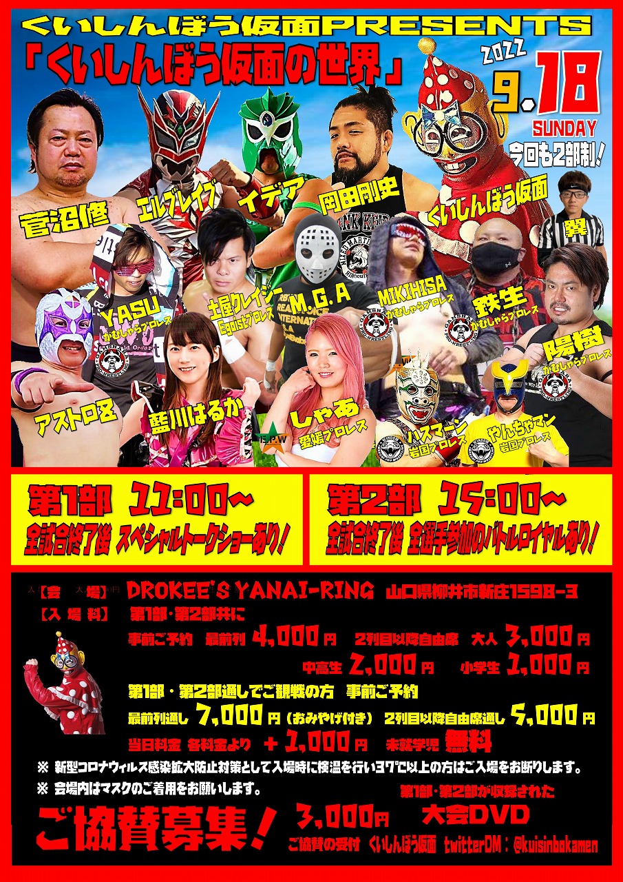 がむしゃらプロレスより、SMITH、ダイナマイト九州、陽樹、KENZO選手参戦!!