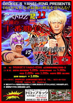 ☆チケット料金◆リングサイド自由席7,000円/1階自由席5,000円/2階自由席/3,000円/中高生3,000円/小学生以下無料