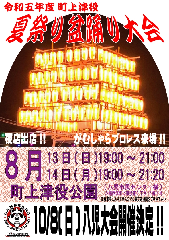 町上津役公園特設リング(八児市民センター横~北九州市八幡西区町上津役東1-17-1)【雨天時】北九州市立八児小学校 体育館(北九州市八幡西区町上津役西4-5-1)