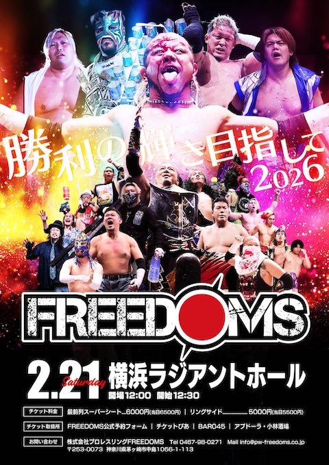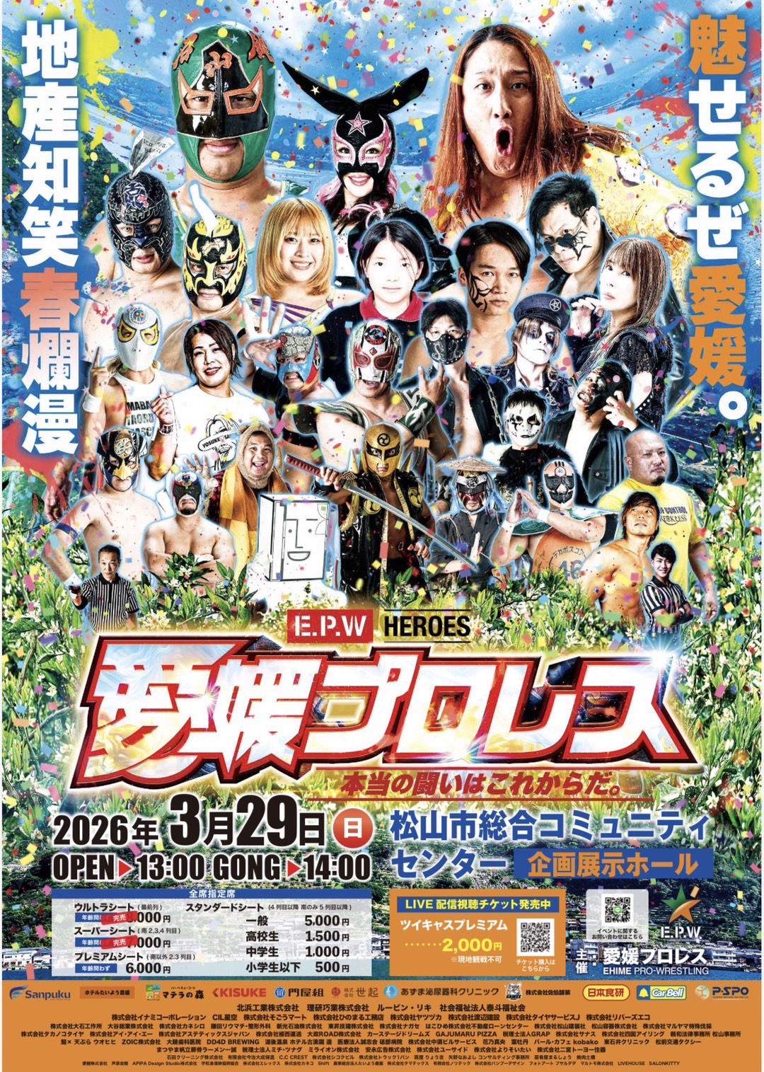 ☆チケット料金◆最前列7,000円(当日7.500円)/特別リングサイド6,000円(当日6,500円)/自由席4,000円(当日4,500円)
